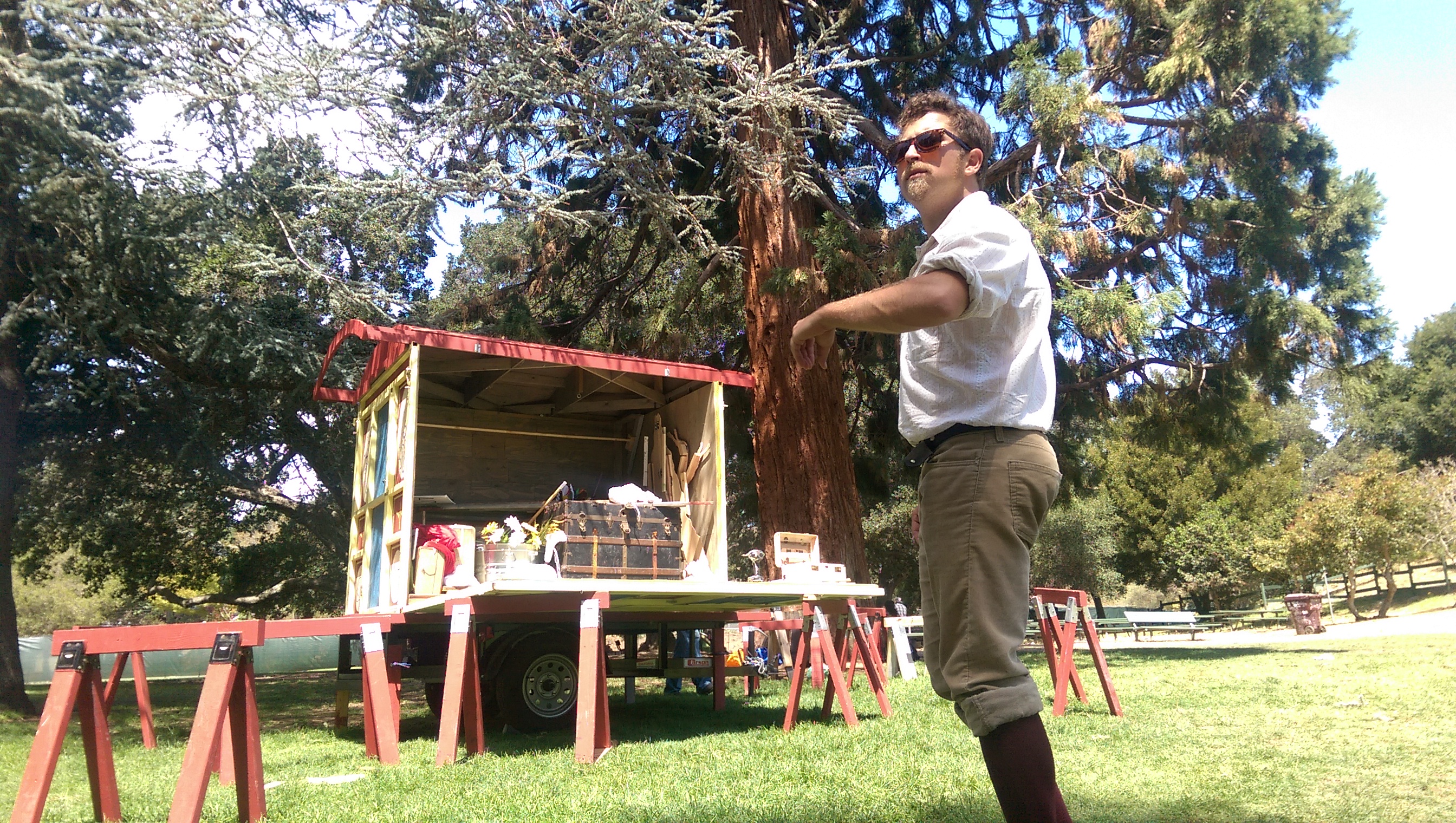 IMAG2441 Published June 27, 2016 at 2688 × 1520 in History of SPPP ← Previous Next → Impresario and artiste Samuel Peaches oversees the arrival of FluxWagon at a Peripatetic Players performance site. Like Loading...